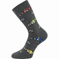 Dětské protiskluzové ponožky SIBIŘ 08 ABS s obrázky mix A kluk jsou dětské silné hřejivé ponožky s barevnými obrázky pro kluky i holky. Velmi jemné a teplé ponožky jsou příjemné na nošení. Dětské veselé ponožky Boma® s protiskluznými puntíky mají zesílené froté chodidlo tlumící nárazy, nohy tak mají dítka jako v bavlnce. Díky pružnému elastanu dobře drží tvar a nepadají dolů. Bavlněné ponožky jsou hebké na omak dokáží dobře pojmout vlhkost. Dětské ponožky jsou klasické výšky a mají měkký pružný lem. Vhodné na celodenní nošení. Hravé a barevné ponožky prodáváme v mixu, ve výhodném balení 3 párů v barvách pro dívky i pro chlapce. Díky protiskluznému chodidlu s ABS úpravou nemusí vaše děti ani nosit bačkory.