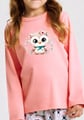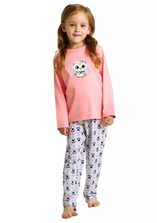 Dívčí pyžamo Emma 3486/3487/52 značky TARO přináší radost a pohodlí do každého večera. Vrchní díl v jemné pastelově růžové barvě zdobí hravý obrázek sovičky s velkýma očima, který si malé slečny zamilují. Volnější střih rukávů a příjemně padnoucí tělo zajišťují maximální volnost pohybu během spánku i domácího lenošení. Spodní díl v bílé barvě je oživen veselým vzorem zvířátek, což dodává pyžamu originální vzhled a hravost. Elastický pas kalhot se postará o pohodlí po celou noc. Celý komplet je vyroben z vysoce kvalitní, měkké a prodyšné bavlny, která je šetrná k dětské pokožce a poskytuje pocit lehkosti a relaxace.