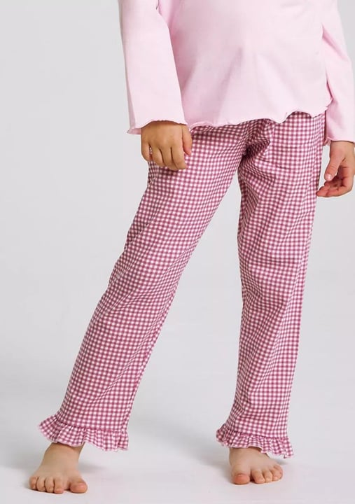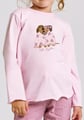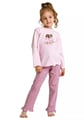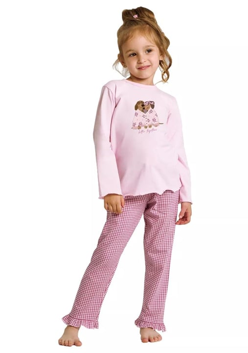 Dívčí pyžamo Jasmina 3492/3493 značky TARO přináší do dětského šatníku harmonii pohodlí a hravého stylu. Horní díl v jemné růžové barvě zdobí roztomilý obrázek dvou pejsků s květinovými detaily, což potěší každou malou slečnu. Měkký materiál ze 100% bavlny je příjemný na dotek a umožňuje pokožce volně dýchat po celou noc. Dlouhé kalhoty s klasickým červeno-bílým kostkovaným vzorem a decentním volánkem u nohavic vytvářejí půvabný celek, který si děti zamilují nejen na spaní, ale i při domácím odpočinku. Volnější střih poskytuje maximální pohodlí bez omezení pohybu.