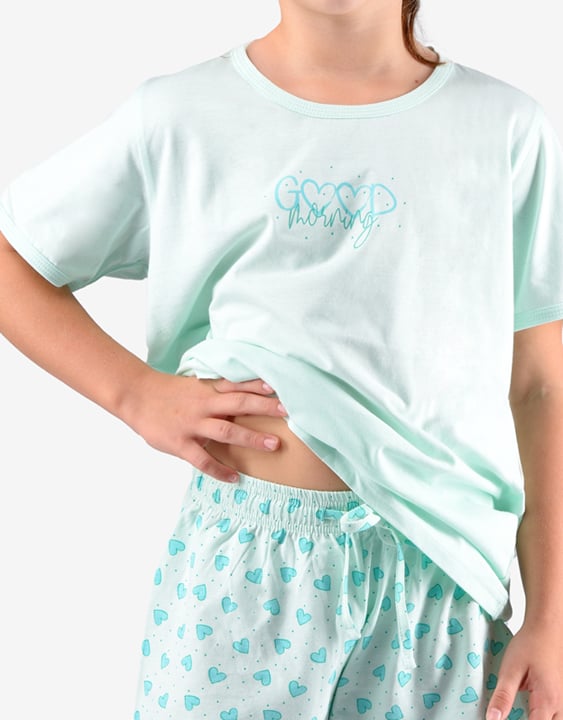 Základem kvalitního spánku je vaše pohodlí, ke kterému vám pomůže i pohodlné noční prádlo. Naše dívčí pyžamo s krátkým rukávem a šortkami s potiskem potěší každou malou parádnici. Tričko má potisk na hrudníku, pyžamo je celé navržené v moderním designu a ušité ze 100% bavlněného úpletu, díky kterému se v něm bude spát doslova jako v bavlnce.