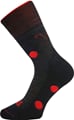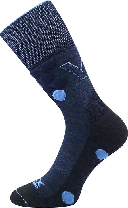 Dvouvrstvé merino ponožky VoXX TAYRON jsou Speciální dámské a pánské outdoorové ponožky. Mají jedinečný žebrovaný slabý lem, který je velmi pružný, nohu nestahuje, neškrtí a zaručuje jejich dobré prokrvení. Chodidlo, zóna nad patou a zóna na holeni má jedinečné puntíkované polstrované zóny proti otlakům, pata a špice je navíc zesílené měkkým froté. Špice dvojitých ponožek je spojená plochým řetízkováním. Samotná ponožka je dvojitá, druhá ponožka je do vnější zapletená patentovanou technologií TWIN LAYER. Materiály merino vlna a polypropylen silproX® dokonale odvádí pot z vnitřní vrstvy, dvojitá ponožka má špičkové izolační vlastnosti, přirozenou antibakteriální ochranu posílenou ionty stříbra a hodí se tak na turistiku, outdoorové aktivity i celodenní nošení v rozmezí teplot od - 20°C do + 20°C, je v teplotní třídě B-C.
