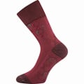 Dvouvrstvé merino ponožky VoXX TAYRON vínová speciální dámské a pánské outdoorové ponožky. Mají jedinečný žebrovaný slabý lem, který je velmi pružný, nohu nestahuje, neškrtí a zaručuje jejich dobré prokrvení. Chodidlo, zóna nad patou a zóna na holeni má jedinečné puntíkované polstrované zóny proti otlakům, pata a špice je navíc zesílené měkkým froté. Špice dvojitých ponožek je spojená plochým řetízkováním. Samotná ponožka je dvojitá, druhá ponožka je do vnější zapletená patentovanou technologií TWIN LAYER. Materiály merino vlna a polypropylen silproX® dokonale odvádí pot z vnitřní vrstvy, dvojitá ponožka má špičkové izolační vlastnosti, přirozenou antibakteriální ochranu posílenou ionty stříbra a hodí se tak na turistiku, outdoorové aktivity i celodenní nošení v rozmezí teplot od - 20°C do + 20°C, je v teplotní třídě B-C.