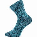 Froté ponožky TERY jsou dámské silné ponožky, které zahřejí kromě vašich nohou i vaši duši. Uvnitř mají jemně počesané, silné celofroté. Hřejivé ponožky jsou vyšší, můžete je nosit vytažené nebo elegantně ohrnuté. Levá ponožka je zdobená našitým kovovým štítkem s logem VoXX®. Barevné ponožky jsou ideální pro zimní aktivity, ale také i na domácí lenošení na pohovce nebo při sledování televize. Vzít si je můžete i do postele. V teplotní třídě C od -20°C až do +5°C jsou dostupné ve výhodném balení 3 různobarevných párů.