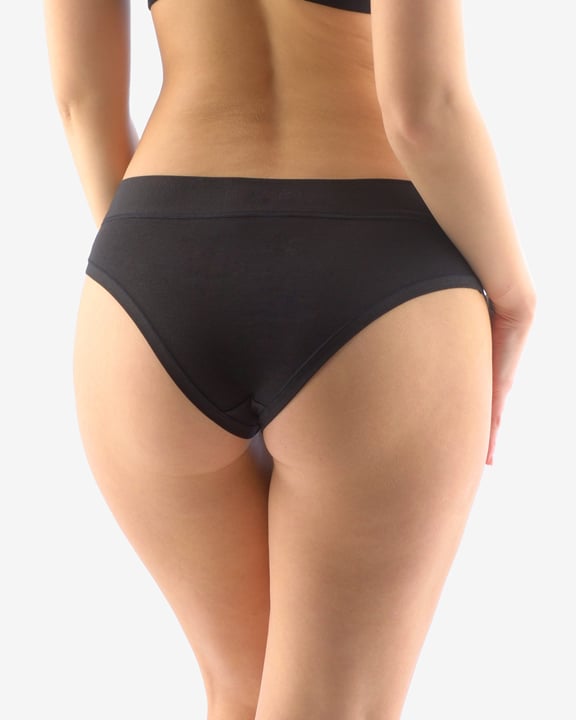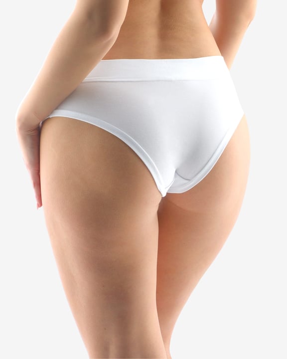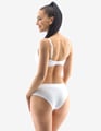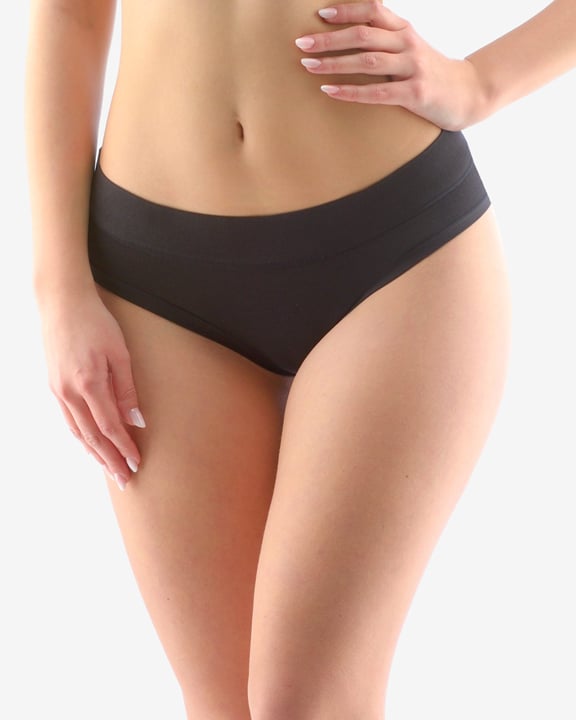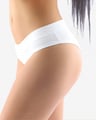 GINA 14147P jsou bokové kalhotky francouzského střihu se širokým bokem a širším pasovým lemem, dámské šité prádlo. Pasový kraj je začištěný širším lemem ze stejného materiálu. Nohavičky jsou začištěné úzkým lemem ze stejného materiálu. Kalhotky jsou jednobarevné.