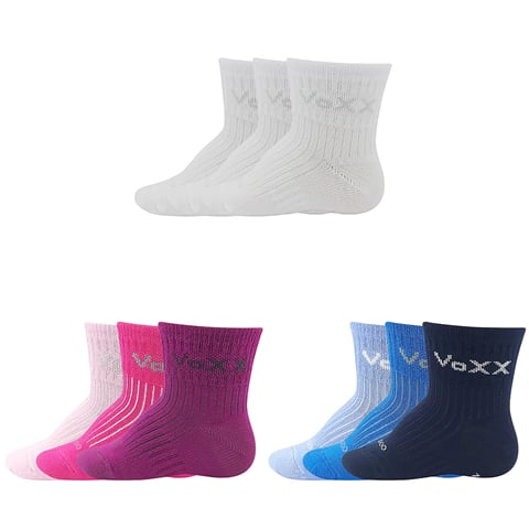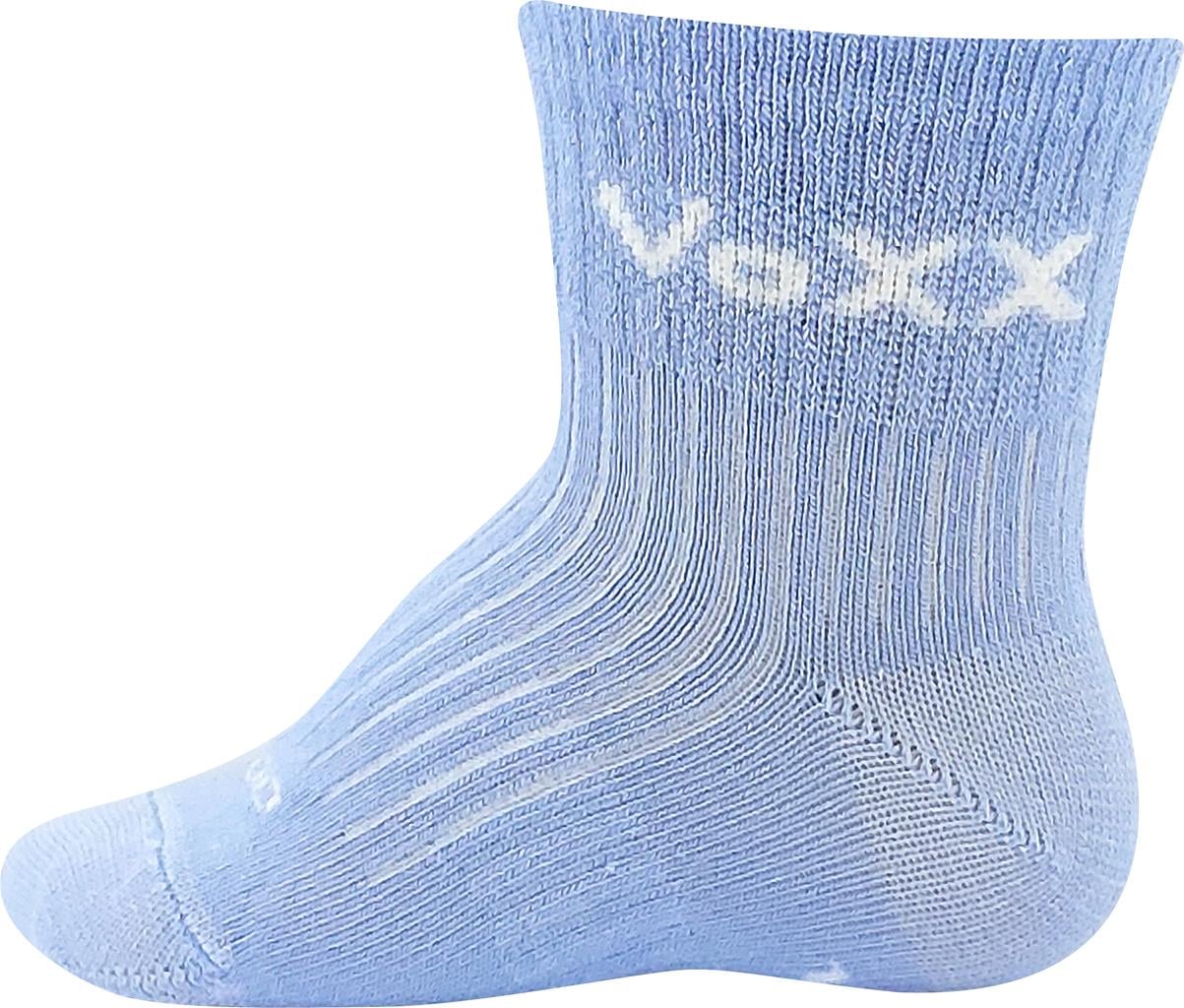 Kojenecké dětské ponožky VoXX Bambík jsou kojenecké slabé ponožky VoXX® BAMBÍK jsou určené pro nejmenší nožičky. Použitá bambusová viskóza je přírodní materiál s úžasnými přednostmi. Má antialergické vlastnosti, výborně saje vlhkost, sám o sobě je antibakteriální a krásně se leskne. Lem ponožky je velmi jemný, nikde nestahuje a nezařezává se do pokožky. Prodyšné zóny odvádí pot od pokožky a udržují pokožku v suchu.