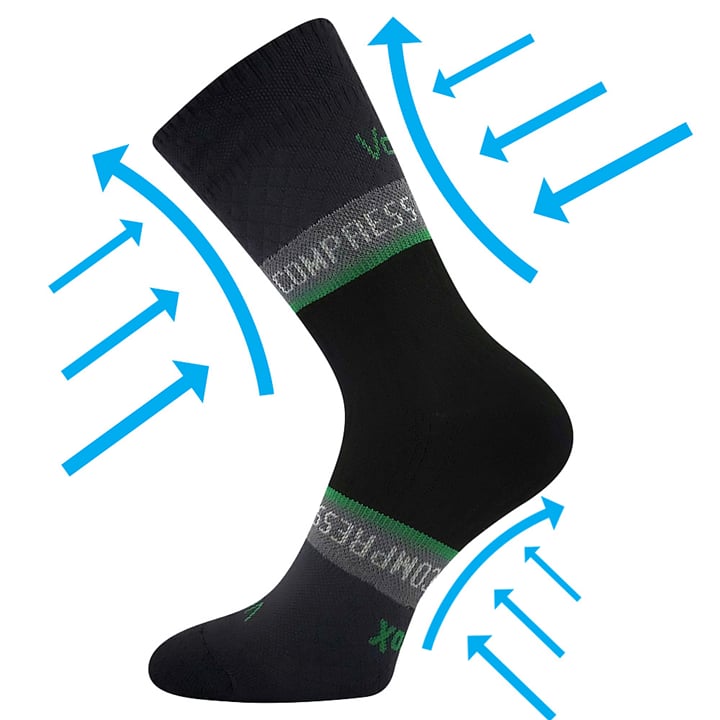 Kompresní ponožky VoXX FIXAN jsou dámské i pánské sportovní ponožky se speciální bandáží ANKLEFIX. Tato speciální bandáž snižuje maximální rozsah pohybu kotníku ve srovnání s klasickou ponožkou, proti klasické ponožce je kotník více fixovaný do stabilní polohy. Právě proto tyto kompresní ponožky napomáhají pevnějšímu držení a vyšší stabilitě kotníku a přispívají i ke snížení rizika vyvrtnutí. V teplotní třídě B jsou vhodné do teplotního rozmezí od -5°C až +20°C.