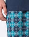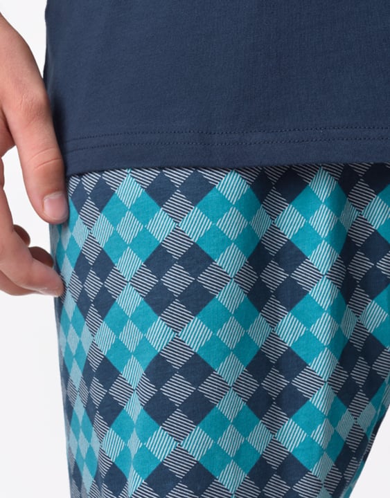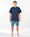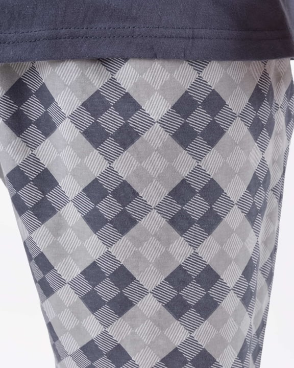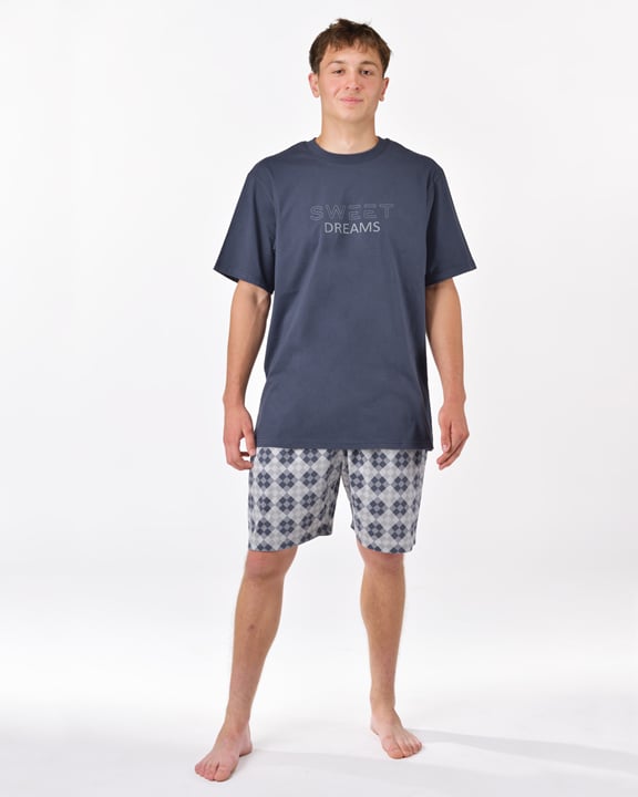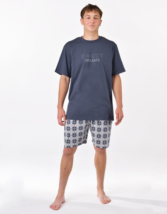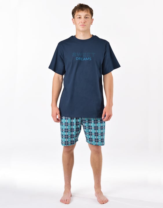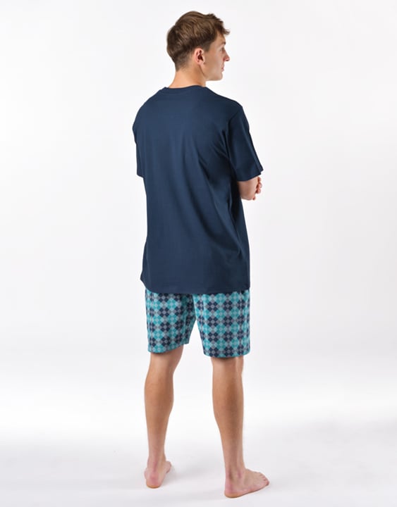 Krátké pánské pyžamo GINO 79198P je pánské pyžamo volného střihu z jemného úpletu, které Vám poskytne pohodlí během spánku. Krátké kalhoty s potiskem doplňuje triko s vetším potiskem na hrudi a krátkými rukávy.