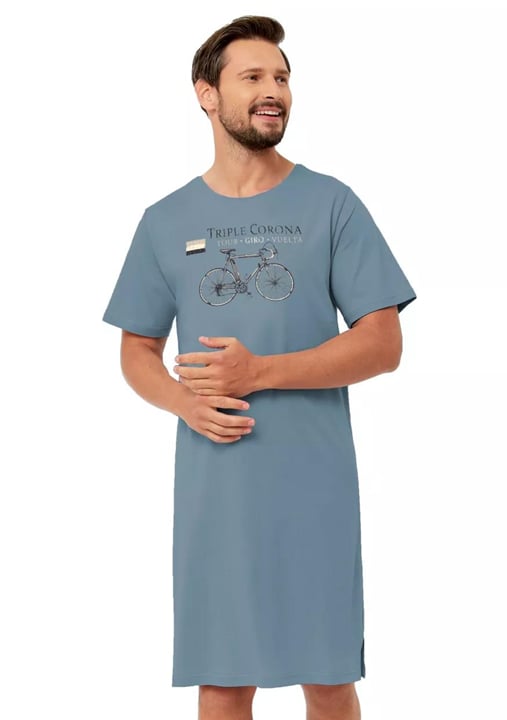 Pánská noční košile Matej 1704/51 značky HOTBERG přináší spojení pohodlí a stylu, které ocení každý muž hledající kvalitní domácí oděv. Jemný jeans odstín působí klidně a uvolněně, zatímco originální potisk s motivem silničního kola dodává hravý nádech i osobitost. Díky volnému střihu sahajícímu ke kolenům si užijete maximální svobodu pohybu při spánku i domácí relaxaci. Lehký materiál z čisté bavlny je příjemný na dotek a skvěle odvádí vlhkost, což oceníte zejména v teplejších měsících.