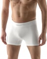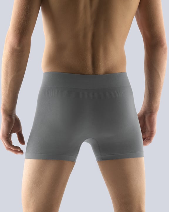 GINO 54004P jsou boxerky s delší nohavičkou, pánské bezešvé prádlo. Pasový kraj je zesílený a zapravený bezešvým způsobem. Nohavičky jsou zapravené bezešvým způsobem. V rozkroku je všitý klínek. Na předním díle jsou boxerky tvarovány vypletenými zónami. Boxerky jsou jednobarevné. V záložce je vypletené logo v šedé barvě.