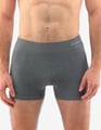GINO 54005P jsou boxerky s delší nohavičkou, pánské bezešvé prádlo. Pasový kraj je zesílený a zapravený bezešvým způsobem. Nohavičky jsou zapravené bezešvým způsobem. V rozkroku je všitý klínek. Na předním díle jsou boxerky tvarovány vypletenými zónami. Boxerky jsou jednobarevné. V záložce je vypletené logo v šedé barvě.