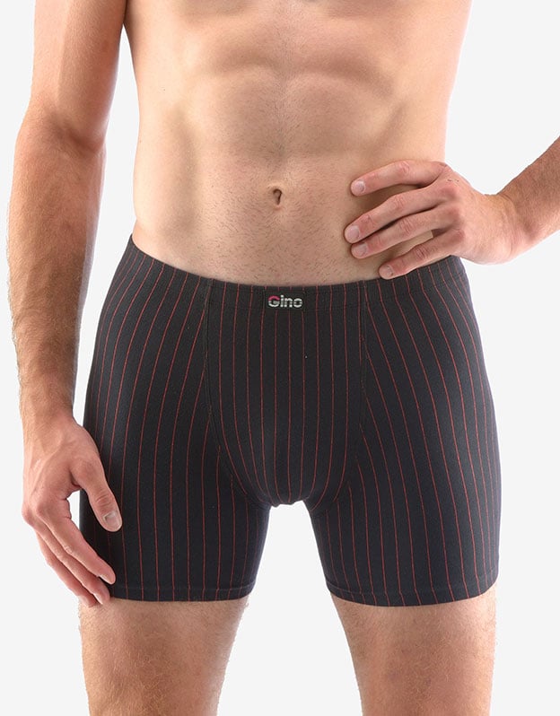 Pánské boxerky s delší nohavičkou GINO 74151P jsou pánské boxerky s delší nohavičkou mají zadní díl členěn dvěma švy, jsou z bavlněného úpletu doplněném o elastanová vlákna. Tento materiál má vypletený pruhovaný vzor, je pružný a pohodlný pro každodenní nošení.