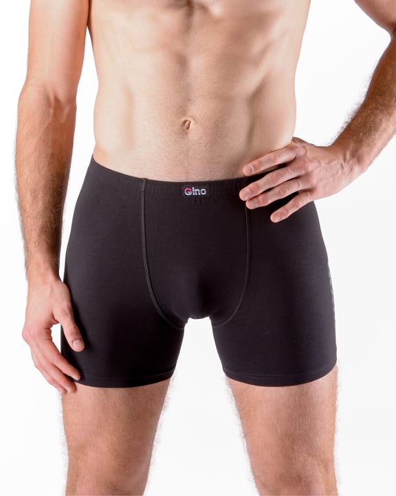 Pánské boxerky s delší nohavičkou GINO 74165P jsou jednobarevné pánské boxerky s delší nohavičkou mají zadní díl členěn dvěma švy, jsou z bavlněného úpletu doplněném o elastanová vlákna. Tento materiál je pružný a pohodlný pro každodenní nošení. Boxerky mají na levé nohavičce potisk.