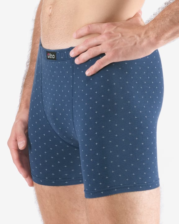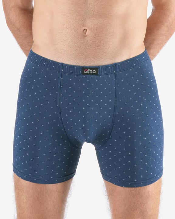 Pánské boxerky s delší nohavičkou nadměrné GINO 74175P je pánské šité prádlo v nadměrných velikostech. V pasovém kraji je zašitá širší pruženka. Nohavičky jsou začištěné podehnutím. Zadní díl je členěný sedlem se dvěma švy. Boxerky jsou jednobarevné. Na nohavici je umístěn solitér. Materiál je vyroben z modelového vlákna, které je doplněno bavlnou a elastanem. Úplet je vhodný pro všechny, kteří hledají přírodní materiály. Elastan přidává materiálu pružnost a zlepšuje jeho tvarovou stálost. Prádlo z tohoto materiálu je vhodné pro každodenní nošení.