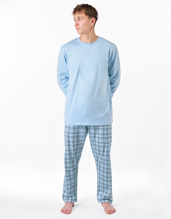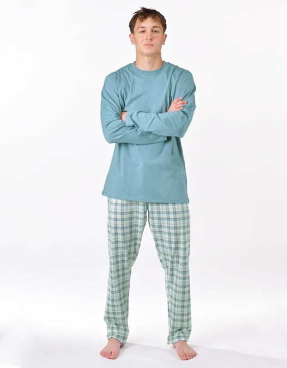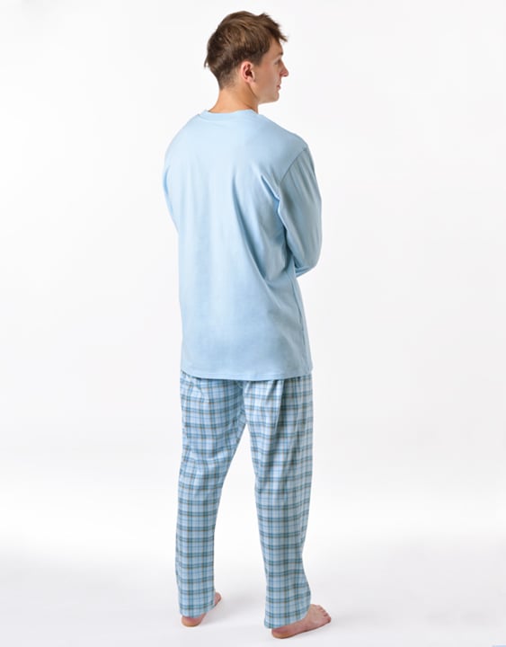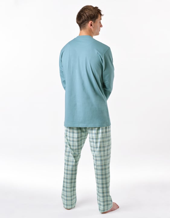 Pánské dlouhé pyžamo GINO 79189P je pánské klasické pyžamo volného střihu z jemného úpletu, které Vám poskytne pohodlí během spánku. Kalhoty s oblíbeným vzorem káro doplňuje jednobarevné triko s dlouhými rukávy.