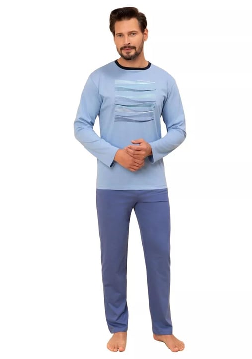 Pánské pyžamo 492/52 značky REGINA představuje ideální volbu pro muže, kteří hledají spojení pohodlí a stylu během odpočinku. Pyžamo je vyrobeno z kvalitní bavlny, která nabízí příjemný pocit na dotek a optimální prodyšnost po celou noc. Horní díl s kulatým výstřihem zdobí moderní obrázek, který dodává celému setu osobitý vzhled. Dlouhé kalhoty v kombinaci s dlouhými rukávy poskytují maximální komfort i v chladnějších dnech, zatímco precizní střih zajistí volnost pohybu bez omezení.