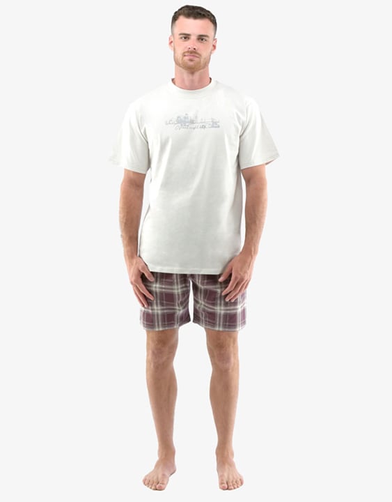 Základem kvalitního spánku je vaše pohodlí, ke kterému vám pomůže i pohodlné noční prádlo. Tohle pyžamo zaručeně nadchne milovníky klasiky a kárového vzoru. Triko s krátkým rukávem a kruhovým výstřihem je doplněno soliterním tiskem na hrudi. Na krátké kalhoty jsme zvolili zmíněný oblíbený vzor káro. Bavlněný úplet je ideální volbou materiálu pro noční prádlo a potěší hlavně příznivce přírodních materiálů. Budete se v něm cítit doslova jako v bavlnce.