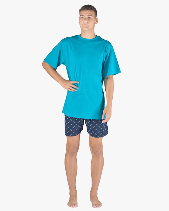 Pánské pyžamo krátké GINO 79150P Pánské pyžamo volného střihu z jemného úpletu Vám poskytne pohodlí během spánku. Krátké kalhoty se s motivem formulí doplňuje jednobarevné triko s krátkými rukávy.