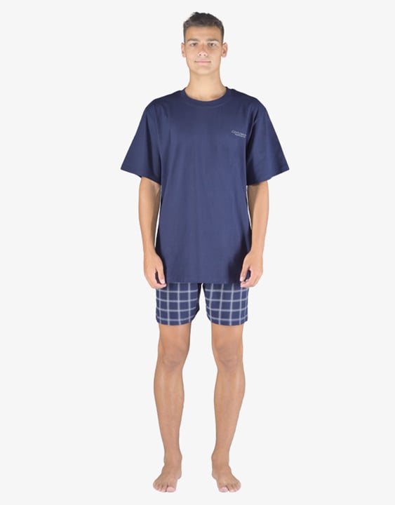 Pánské pyžamo krátké GINO 79152P Pánské pyžamo volného střihu z jemného úpletu Vám poskytne pohodlí během spánku. Oblíbeným vzorem káro jsou potištěny krátké kalhoty, triko s krátkými rukávy zdobí malý potisk na hrudi. Oblíbeno džentlmeny.