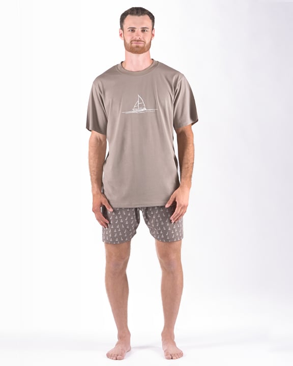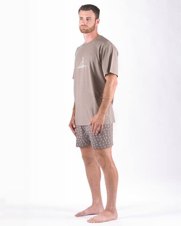 Pánské pyžamo krátké GINO 79172P je pánské pyžamo volného střihu z jemného úpletu, které Vám poskytne pohodlí během spánku. Krátké kalhoty s jednoduchým vzorem doplňuje triko s potiskem na hrudi s krátkými rukávy.