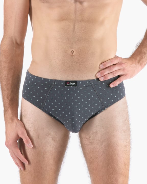 Pánské slipy nadměrné GINO 71134P jsou slipy se širším bokem - pánské šité prádlo. V pasovém kraji je zašitá širší pruženka. V nohavičkách je zašitá úzká pruženka. Slipy jsou vyrobené z materiálu s vypletenými proužky.