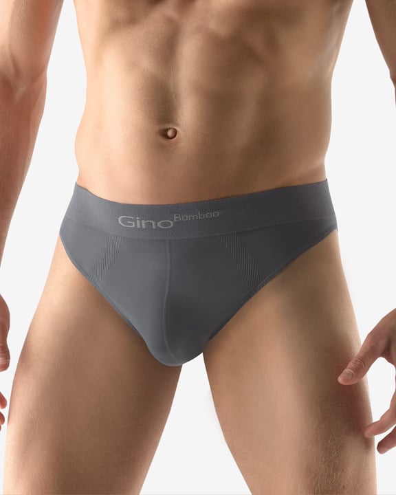 GINO 50003P jsou pánské, bezešvé slipy s úzkým bokem. Pasový kraj je zesílený a zapravený bezešvým způsobem. V nohavičkách je zašitá úzká pruženka. Na předním díle jsou slipy tvarovány vypletenými zónami. Slipy jsou jednobarevné. V záložce je vypletené logo v šedé barvě.