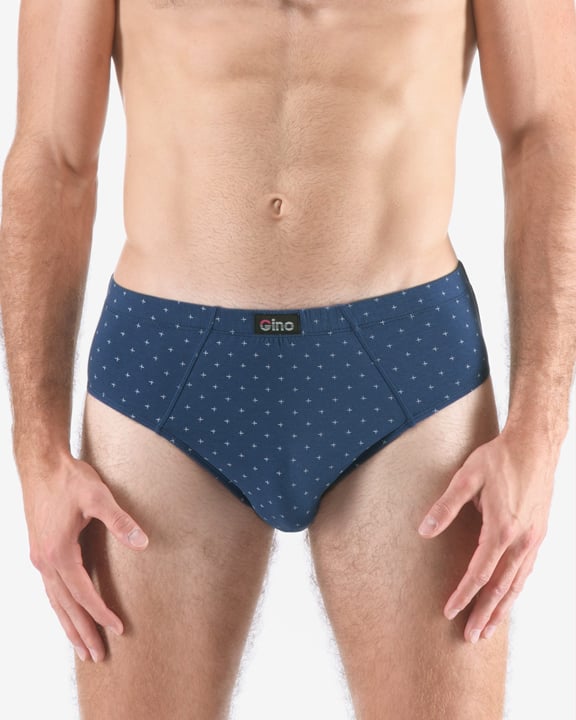Pánské slipy se širším bokem GINO 71132P jsou slipy se širším bokem, pánské šité prádlo. V pasovém kraji je zašitá širší pruženka. V nohavičkách je zašitá úzká pruženka. Slipy jsou vyrobené z materiálu s vypletenými proužky.