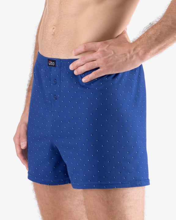 Pánské volné trenky GINO 75212P jsou volné trenky ze 100% bavlny, které potěší každého, kdo má rád klasický pohodlný střih volných trenek a přírodní materiály. Dobře padnoucí pasová guma a rozparek na dva knoflíky jsou samozřejmostí. Tento kousek má drobný celoplošný vzor a v pase nášivku s logem Gino a jsou vhodné pro každodenní nošení.