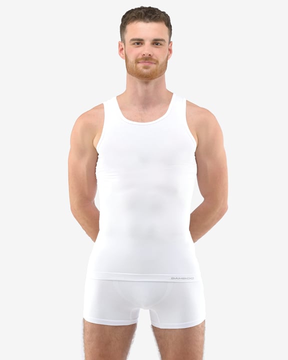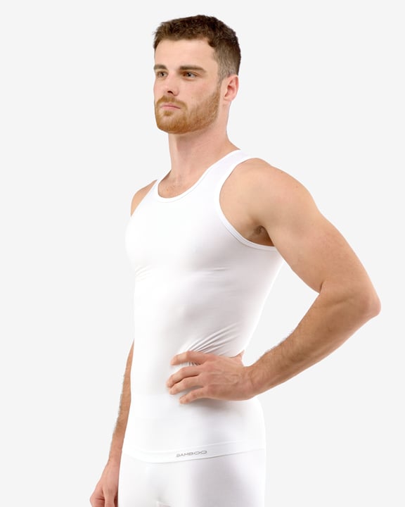 eco BAMBOO GINO 58008P je nátělník se širšími ramínky, pánské bezešvé prádlo. Dolní kraj je zapravený bezešvým způsobem. Průramky a průkrčník jsou začištěny lemovacími proužky. Nátělník je jednobarevný. V záložce je vypletené logo v šedé barvě.