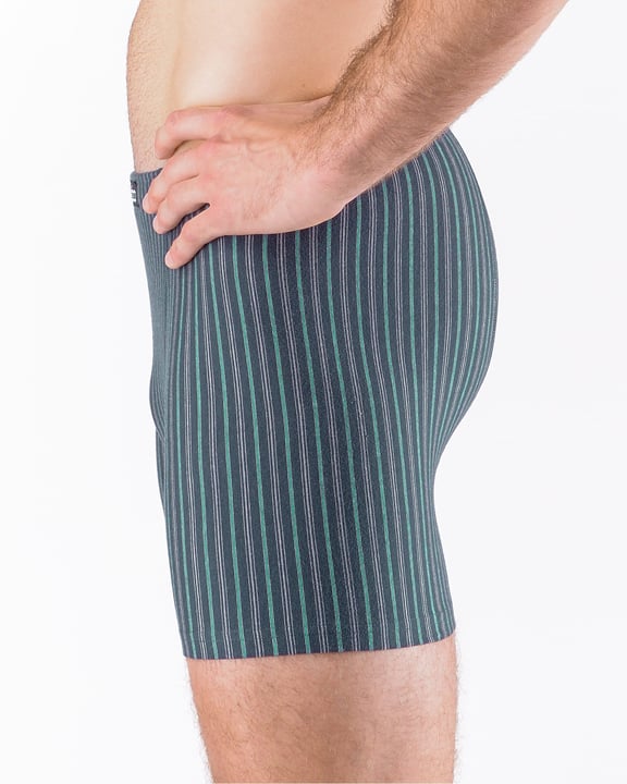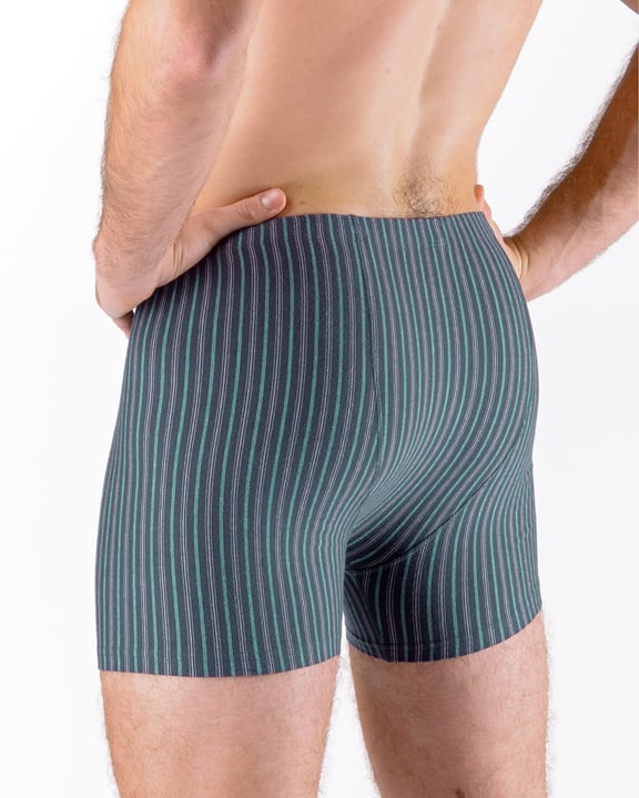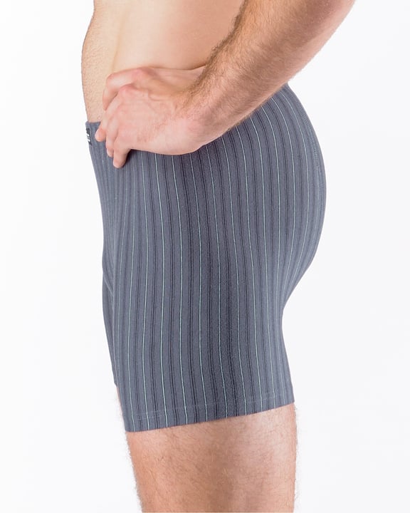 Pánské boxerky s delší nohavičkou, jejich zadní díl je členěný sedlem se dvěma švy, vyplétané decentní proužky budou ideální volbou pro každého, kdo má rád přírodní materiály. Úplet je z modalového vlákna s bavlnou, doplněném o elastanová vlákna. Boxerky jsou díky tomuto materiálu přizpůsobivé a velmi pohodlné.