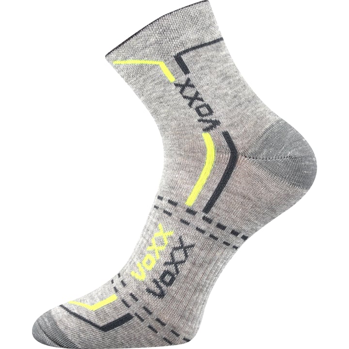 Ponožky VoXX FRANZ 03 jsou dámské i pánské sportovní ponožky pro každého. Vlhkost pohlcující bavlna je doplněná o elastan, který ponožkám dodává pružnost a dobře sedí na noze. Slabé ponožky ve střední výšce nad kotník jsou výborně prodyšné, elastická zóna přes nárt zabraňuje přetočení ponožek v obuvi. Unisex ponožky jsou vhodné na fitness a sportovní vyžití až po cyklistiku.