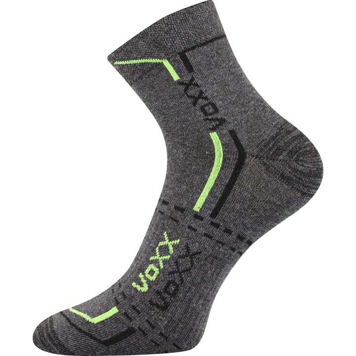 Ponožky VoXX FRANZ 03 jsou dámské i pánské sportovní ponožky pro každého. Vlhkost pohlcující bavlna je doplněná o elastan, který ponožkám dodává pružnost a dobře sedí na noze. Slabé ponožky ve střední výšce nad kotník jsou výborně prodyšné, elastická zóna přes nárt zabraňuje přetočení ponožek v obuvi. Unisex ponožky jsou vhodné na fitness a sportovní vyžití až po cyklistiku.