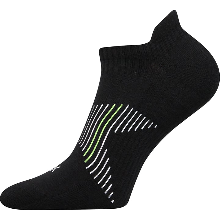 Ponožky VoXX PATRIOT A jsou dámské a pánské univerzální nízké ponožky v nízké výšce ke kotníku. Sportovní ponožky mají rozsáhlé využití, hodí se na běh, tenis, fitness, halové a indoorové aktivity i celodenní nošení. Přírodní bavlna je příjemná na nošení a dobře odvádí pot, řetízkovaná špice nikde netlačí, elastická zóna na nártu zabraňuje přetáčení ponožek v obuvi, zesílené polstrované zóny na špici, patě a chodidle tlumí nárazy a zajistí tak komfort při nošení, ať už v nich podnikáte cokoliv. Citlivou patu ochrání před puchýři a otlaky speciální zvýšený lem. Ponožky jsou v teplotní třídě A od +10°C do + 35°C.