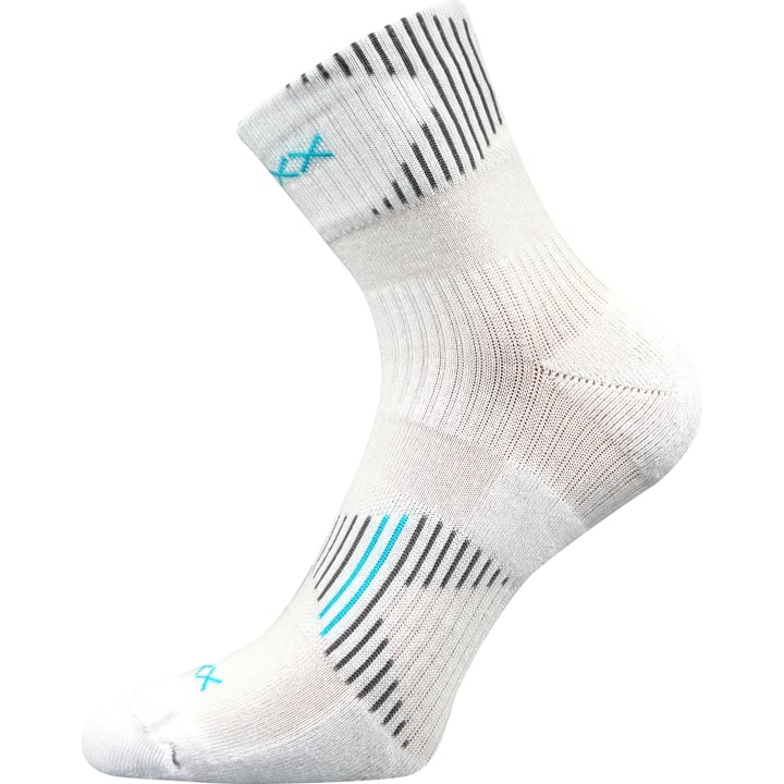 Ponožky VoXX PATRIOT B jsou dámské i pánské univerzální ponožky ve střední výšce. Sportovní ponožky mají rozsáhlé využití, hodí se na běh, tenis, fitness, halové a indoorové aktivity i celodenní nošení. Přírodní bavlna je příjemná na nošení a dobře odvádí pot, řetízkovaná špice nikde netlačí, elastická zóna na nártu zabraňuje přetáčení ponožek v obuvi, zesílené polstrované zóny na špici, patě a chodidle tlumí nárazy a zajistí tak komfort při nošení, ať už v nich podnikáte cokoliv. Ponožky jsou v teplotní třídě A od +10°C do + 35°C.