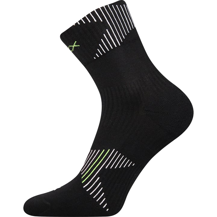 Ponožky VoXX PATRIOT B jsou dámské i pánské univerzální ponožky ve střední výšce. Sportovní ponožky mají rozsáhlé využití, hodí se na běh, tenis, fitness, halové a indoorové aktivity i celodenní nošení. Přírodní bavlna je příjemná na nošení a dobře odvádí pot, řetízkovaná špice nikde netlačí, elastická zóna na nártu zabraňuje přetáčení ponožek v obuvi, zesílené polstrované zóny na špici, patě a chodidle tlumí nárazy a zajistí tak komfort při nošení, ať už v nich podnikáte cokoliv. Ponožky jsou v teplotní třídě A od +10°C do + 35°C.