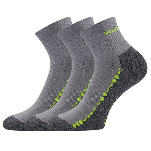 Ponožky VoXX VECTOR jsou dámské i pánské sportovní bavlněné ponožky extra kvality ve střední výšce nad kotník. Vhodné jsou na celodenní nošení i letní sportovní aktivity. Aby ponožky dobře držely na nože, mají přes nárt elastickou bandáž, která je udrží na místě. Volný neškrtící lem nohy nestahuje a špici má spojenou jemnějším řetízkováním. Unisex ponožky jsou dostupné v nadměrných velikostech, díky vysokému podílu bavlny jsou příjemné na omak i k pokožce, dobře pohlcují vlhkost. Zařazené jsou v teplotní třídě A, od +10°C do +35°C.