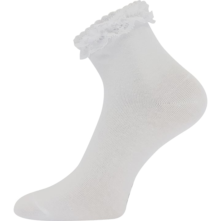 Dívčí slabé ponožky Boma® KRAJIK jsou bílé, středně vysoké ponožky s lemem zdobeným jemnou krajkou.