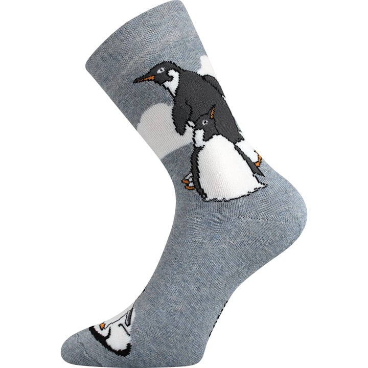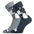 Ponožky BEDŘICH jsou dámské i pánské silné ponožky s roztomilým zimním motivem tučňáků. Ponožky mají vysoký podíl bavlny a pružného elastanu. Díky tomu jsou ponožky jemné na omak, příjemné na nošení a dobře pohlcují vlhkost a zároveň dobře drží na noze. Dámské a pánské ponožky jsou z jemného froté, jsou tak velice příjemné, vhodné na běžné nošení v chladných a sychravých dnech.