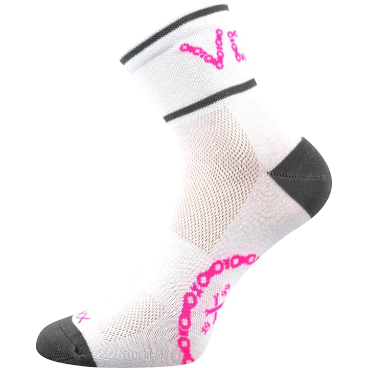 Ponožky VoXX SLAVIX jsou dámské i pánské sportovní ponožky určené pro cyklistiku a jiné druhy sportovních aktivit. Ponožky jsou extra prodyšné díky odvětrávacím zónám na nártu a elastická bandáž okolo chodidla drží ponožky na svém místě. Lem ponožek je nestahující, špice je uzavřená řetízkováním, takže je spoj hladký a nikde netlačí. Bavlna pohlcuje vlhkost a je příjemná na pokožce a silproX® je díky iontům stříbra antibakteriální. Ponožky jsou vhodné na letní sportovní aktivity nebo celodenní nošení.