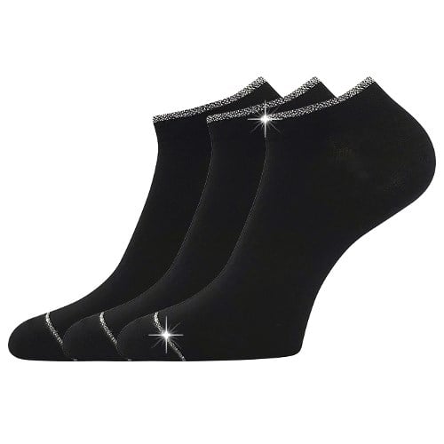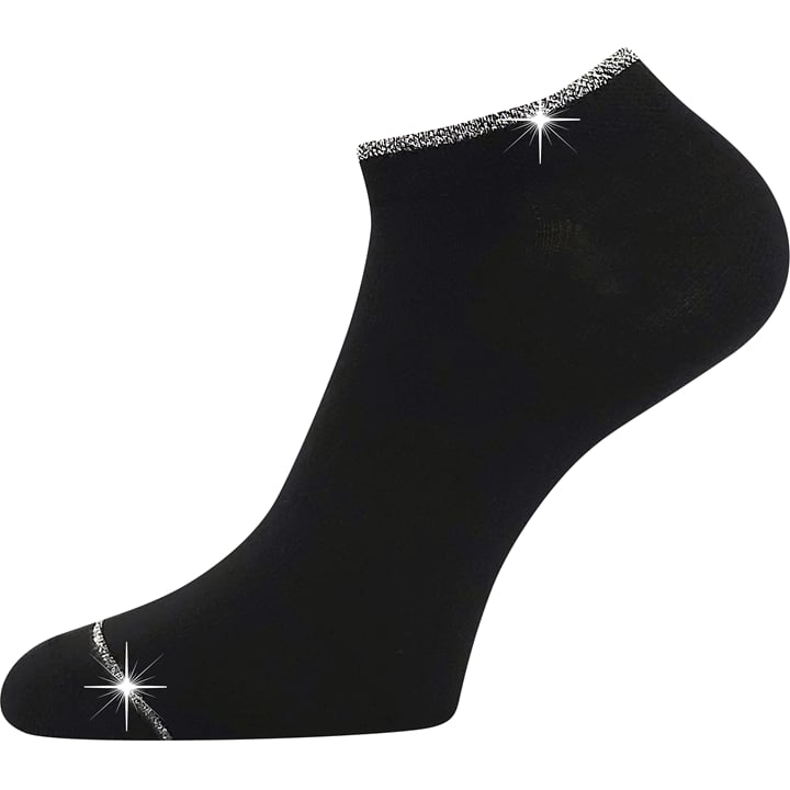 Dámské ponožky LONKA FALUXANA jsou dámské bambusové ponožky s krátkou výškou pod kotník pro každodenní použití. Bambusová viskóza je přírodní materiál s přirozenými antibakteriálními a antialergickými vlastnostmi, jemné a hebké vlákno je příjemné na omak i k pokožce, dobře pohlcuje vlhkost. Kvalitní ponožky jsou jemné, zdobené třpytivými lurexovými vlákny. Špice je uzavřena řetízkováním, takže nikde netlačí a jemný lem nestahuje a neškrtí.