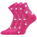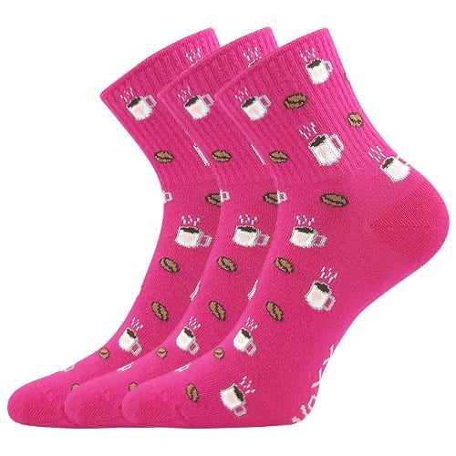 Ponožky VOXX AGAPI jsou dámské slabé ponožky jak na nošení po celý den, tak i volnočasové aktivity. Špička ponožky je uzavřena náročnějším řetízkováním, díky kterému je spoj dokonale hladký a nehrozí, že ponožka bude tlačit. Lem ponožek je extra jemný a nestahující, vysoký podíl bavlny je příjemný na nošení. Tenké ponožky ve střední výšce mají obrázkové motivy, v teplotní třídě A je můžete nosit v rozmezí teplot od +10°C do +35°C.