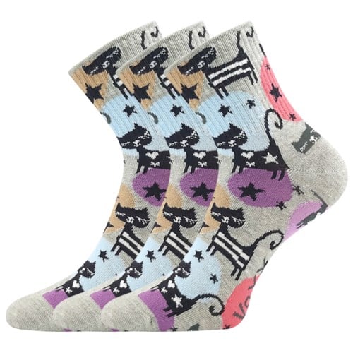 Ponožky VOXX AGAPI jsou dámské slabé ponožky jak na nošení po celý den, tak i volnočasové aktivity. Špička ponožky je uzavřena náročnějším řetízkováním, díky kterému je spoj dokonale hladký a nehrozí, že ponožka bude tlačit. Lem ponožek je extra jemný a nestahující, vysoký podíl bavlny je příjemný na nošení. Tenké ponožky ve střední výšce mají obrázkové motivy, v teplotní třídě A je můžete nosit v rozmezí teplot od +10°C do +35°C.