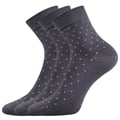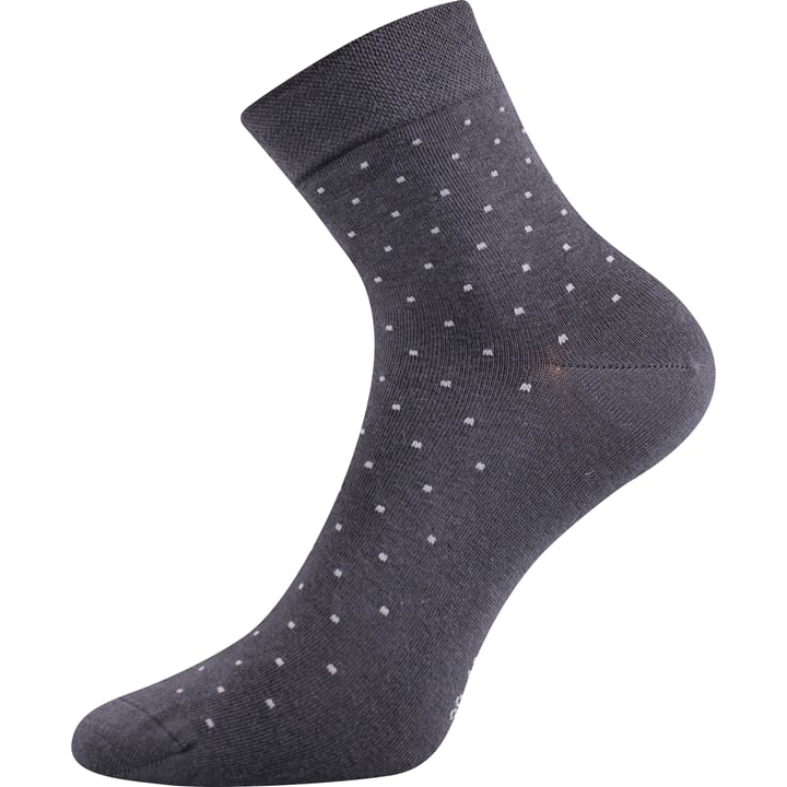 Ponožky LONKA FIONA jsou dámské elegantní ponožky, které si oblíbíte hned jak si je obléknete. Ponožky mají střední výšku nad kotníky, zdobené jsou malými puntíky v decentních barvách. Pro vaše pohodlí jsou s velmi jemným a nestahujícím lemem. Kvalitní ponožky jsou z hladkého úpletu, pleteného na 200 jehlovém stroji, špičku mají spojenou plochým řetízkovým švem, který vůbec necítíte. Bavlněné ponožky jsou vhodné pro běžné nošení na doma i v práci.