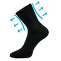 Ponožky VIKTORKA jsou dámské slabé ponožky. Jsou to tenké a jemné ponožky z žebrovaného úpletu. Medicine lem ponožek je extra volný a nestahující, zamezuje otlakům a zaškrcení průtoku krve v končetinách. Díky vysokému podílu bavlny jsou příjemné na omak i k pokožce, dobře pohlcují vlhkost.