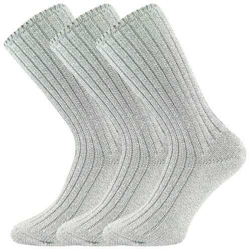 Dámské ponožky Boma JIZERA jsou silné melírované, zimní teplé ponožky z žebrovaného úpletu s vyšším obsahem bavlny. Navíc mají ohrnovacím lem, který se dá nosit efektně ohrnutý nebo můžete ponožky natáhnout až do výšky do půlky lýtek. Nosit je můžete nejen do pracovní obuvi, ale užijete je i při práci venku nebo na zahradě, ale také na doma. Jsou vyrobené z kvalitních materiálů bavlny a polyesteru, trvanlivé, odolné a prodyšné. Medicine lem ponožek je pružný a jemný, aby nohu nesvíral a nezařezává se do pokožky. Díky těmto vlastnostem jsou maximálně pohodlné i pro celodenní nošení. Pracovní ponožky jsou dostupné v dámských velikostech.