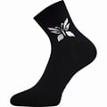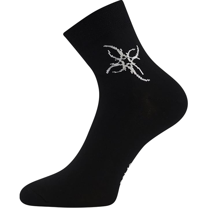Ponožky TATOO jsou dámské i pánské hladké ponožky ve střední výšce nad kotník. Slabé ponožky mají vysoký podíl bavlny, jsou tak velmi příjemné na omak a výborně sají pot. Elastan dobře drží tvar ponožek. Jemný lem nikde neškrtí a nezamezuje oběhu krve. Půvabné ponožky jsou vhodné na celodenní nošení. Jednobarevné ponožky zdobí motiv tetování, na výběr jsou 3 varianty ve výhodném balení.
