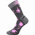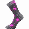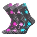 Ponožky VoXX HAWKIK jsou dětské hřejivé froté ponožky, které si vaše děti hned oblíbí. Jsou šedé melírované s barevnými neonovými detaily. Navíc mají špičku spojenou plochým řetízkovým švem, který nikde netlačí. Měkké a teplé celofroté klasické ponožky v klasické výšce využijete v chladnějším období, jsou v teplotní třídě B -5°C do +20°C. K dostání v mixu po 3 párech pro chlapce nebo dívky.