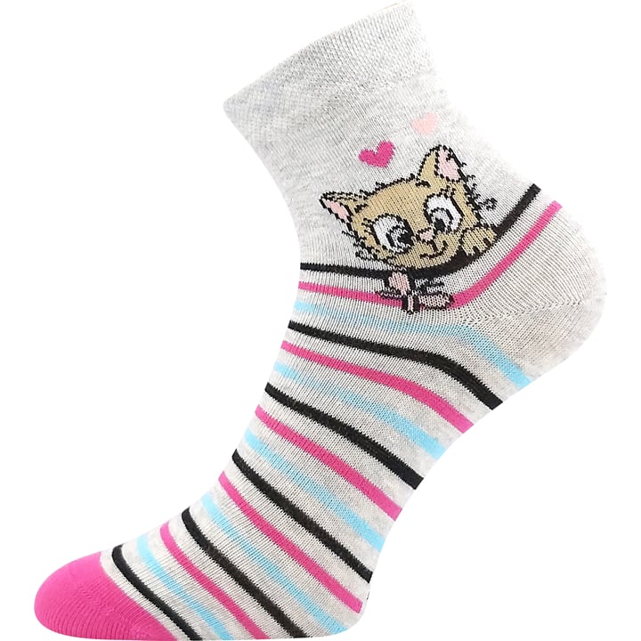 Dětské ponožky BOMA KAY jsou dětské slabé ponožky plné krásných barevných a veselých obrázků. Potěšte vaše děti hravými motivy pro slečny i mladé pány, vybere si každý. Ponožky jsou středně vysoké nad kotník, mají měkký pružný lem a řetízkovanou špici, která netlačí. Vhodné na celodenní nošení. Veselé ponožky prodáváme v mixu.