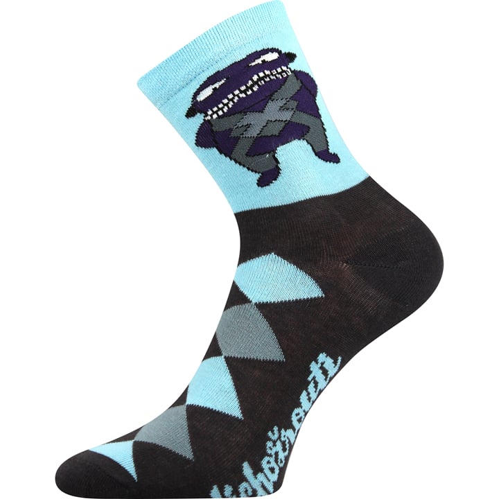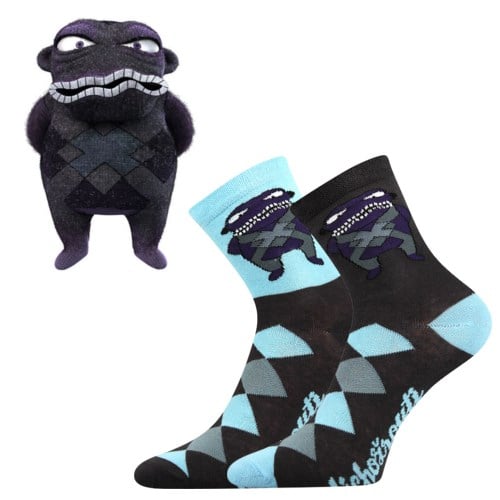 Ponožky LICHOŽROUTI K jsou dětské klasické bavlněné ponožky lichožroutské bandy, která miluje liché ponožky. Hihlík, Padre, Kudla, Ramses, Rezek a Žiletka si ponožky seskládali podle sebe, takže pokud budete chtít mít stejný pár, pořiďte od každého dvě sady.