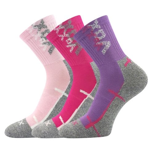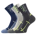 Ponožky VoXX WALLÍK jsou dětské sportovní na omak velmi jemné ponožky se zesíleným froté chodidlem, tlumícím nárazy. Volný lem nohu nestahuje a nezařezává se do pokožky. Vysoký podíl bavlny je příjemný na pokožce a ionty stříbra v materiálu silproX®, který zabraňuje zápachu, ochrání vaše nohy při každodenním nošení. Antibakteriální barevné ponožky v teplotní třídě B jsou pro každodenní použití v rozmezí teplot od -5°C do +20°C. a dostupné ve výhodném balení 3 párů v mixu barev.