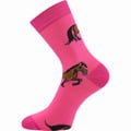 Ponožky HORSIK jsou dětské (dívčí) obrázkové ponožky s motivem koníků a podkoviček. Barevné ponožky jsou v klasické výšce, příjemné a bavlněné. Holčičí ponožky mají nestahující lem a řetízkovanou špici, co netlačí a nedělá puchýře. Ponožky pro malé parádnice v krásných barvách v mixu balení s 2 páry.